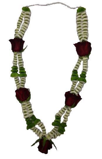 Beautiful garland made with white stallion chrysanthemums with red rose arranged in middle ideal for any occasion.