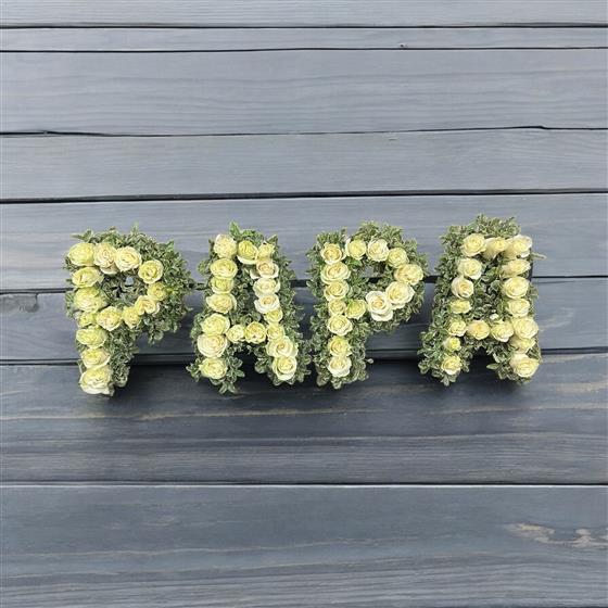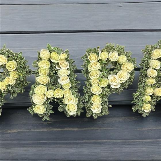 Available in any name or relation in floral letters A to Z or 1 to 0 (maximum 8 character per tribute)Please select the ribbon colour then select Word or Name required.