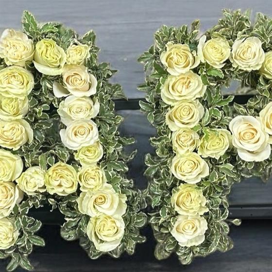 Stunning white roses lettering accompanied by beautiful pittosporum foliage.