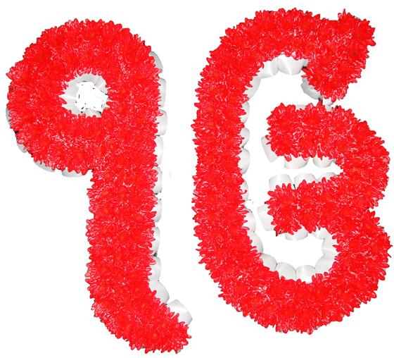 Ek omkar is a symbol of the unity of God in Sikhism, and is found on all religious scriptures and places such as Gurdwaras, made with white chrysanthemums and dyed with colour with ribbon trimming.