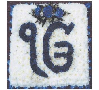 A Symbol of Sikhism Ek Omkar is engraved in middle of large Oasis floral foam base. Made with chrysanthemums with ribbon trimming.