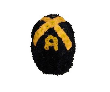 Cut to the shape of 3d cap. Made with a Chrysant base and finished with ribbon.