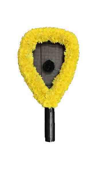 Cut Out in the shape of Squash. Made with a Chrysanthemum base and spray with colours and finished with ribbon.