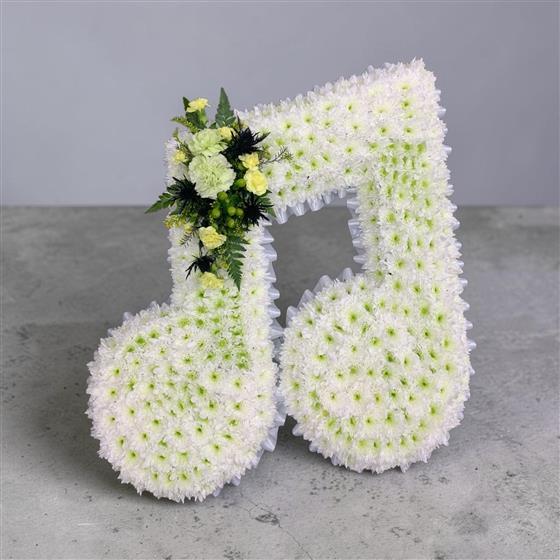 Musical Tune, made on a large base with Chrysanthemum. with ribbon trimming.