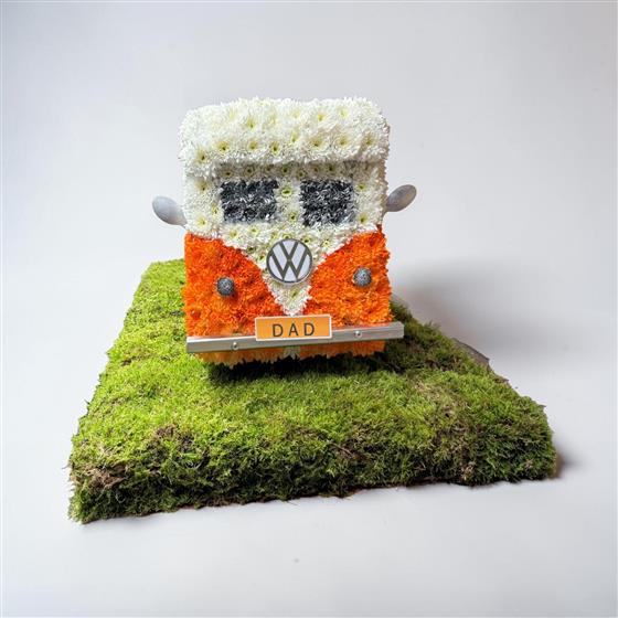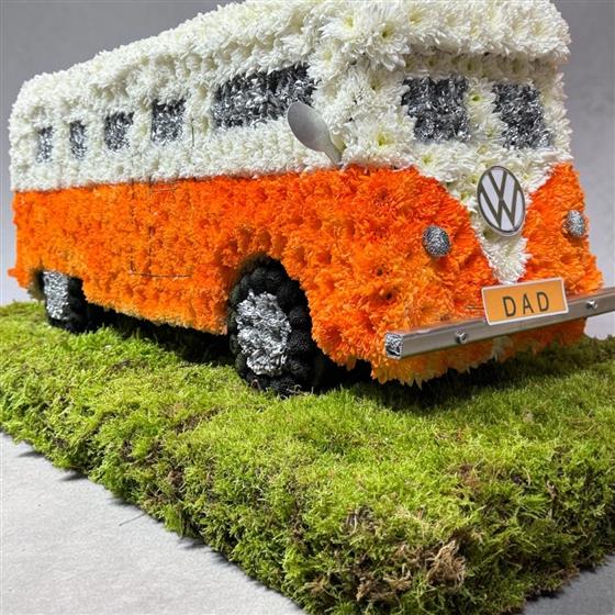A beautiful camper van created in 3d shape based on a Chrysanthemum.