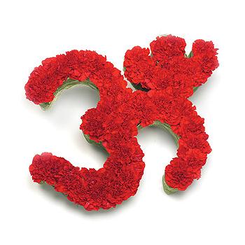 A red Carnation Hindu Om symbol tribute.