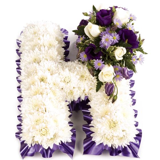 • Made with a chrysant base, with a small arrangement finished with Ribbon trimming, Available in any name or relation in floral letters A to Z or 1 to 0 (maximum 8 character per tribute)Please select the ribbon colour then select Word or Name required.